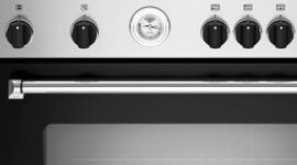 The spacious 142-litre fan-assisted gas oven offers five versatile functions—including bottom bake, defrosting, gas convection, grill, and oven light—enabling precision in every dish. It is paired with an electric grill for added versatility. Monitoring temperature is intuitive thanks to a built-in dial thermometer on the fascia, giving users clear and immediate feedback. The triple-glass oven door enhances heat retention and safety, and the wide extractable glass panel simplifies cleaning.