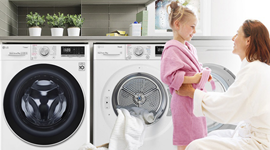 On the other hand, the heat pump dryer ensures excellent drying results while being energy efficient. Its 14 different programs cater to specific fabric types, providing gentle drying to keep your clothes looking their best for longer. The Allergy function is specifically designed for asthma sufferers and sensitive skin, making it a thoughtful addition for any household. With ThinQ technology, you can conveniently connect to the dryer through your smart device - enabling remote troubleshooting, power usage monitoring and operation. Furthermore, boasting an impressive 9 Star Energy Rating, this dryer not only saves you money but also contributes to a greener environment.