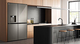 Surround cooling ensures consistent temperature throughout the fridge, preserving food freshness. Powered by an efficient inverter linear compressor, the fridge operates quietly with reduced energy consumption.