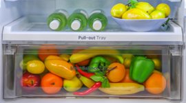 The three tempered glass shelves in the fridge can be arranged at different heights, to organise your food and drink more efficiently. There’s also a pull-out tray at the base of the fridge for easily accessing items at the rear, and a Moist Balance Crisper that helps to maintain the ideal humidity level for storing fresh fruit and vegetables.