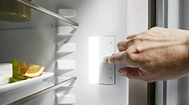 Adjusting the temperature is effortless with Liebherr’s integrated TouchControl. Set your fridge to 3, 5, 7 or 9-degrees Celsius with a light tap. The sleek control panel is built into the interior wall, preserving internal space and maintaining a clean, minimalist design.
