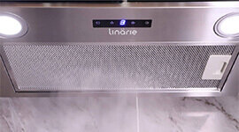 Air quality is paramount in the Linarie rangehood. It comes equipped with a 3-layer aluminium micro-mesh filter, adept at absorbing odours and ensuring premium air quality. Illumination is key in any kitchen, and the Linarie rangehood delivers two bright, energy-efficient 1.5W LED lights. Its head-free design and intuitive control display contribute to a sleek and ergonomic aesthetic, giving your kitchen a modern touch while offering an optimal view of your cooktop.