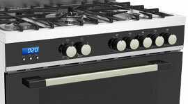 The top of the unit features a cooktop with five gas burners, including a triple ring wok burner for rapid heating and scintillating stir frys. Starting your flame is quick and easy thanks to electronic ignition. For added safety, each burner is fitted with a flame failure device, meaning if the flame is ever extinguished, the gas flow will be automatically cut.