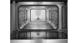 Inside, a PerfectClean stainless steel interior minimizes residue build-up for easy cleaning. Multiple functions—including Conventional Heat, Fan Plus, Grill, Moisture Plus, and Combi-Microwave modes—offer exceptional versatility for baking, roasting, or reheating.