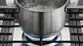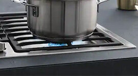 With Miele’s QuickStart function, there's no need to press or hold, just turn the rotary dial and cook. This single-handed control system delivers effortless ignition and precision flame management, turning everyday preparation into a more fluid, refined experience.