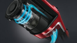 Miele’s Triflex VARTA Lithium-Ion battery is equipped with 7 high-performance cells, giving this cordless handstick a battery life of up to 60 minutes per battery charge.