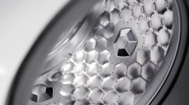 The specially designed Honeycomb drum structure creates a thin film of water between the drum and fabrics. These cushioning garments, during washing, reduce wear while maintaining thorough and effective cleaning performance.