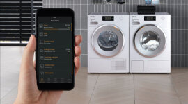 Integrated Miele@home networking enables complete app control of the washing machine. Users can monitor programmes, start or stop cycles remotely, and receive updates directly to their smart device for enhanced convenience and flexibility.