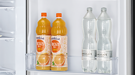 If you need to put away tall and large items in the main compartment, the elevating shelf can provide extra height while the smooth-sliding shelf can be adapted to offer two tiers of space. You can store fish, meats, or dairy products separately inside the Sliding Chilled Case and ensure these items are kept fresher for longer. On the door section, you’ll find a spacious door pocket to fit large bottles and jugs.