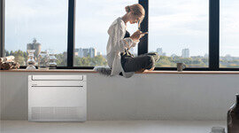 Enjoying cooling and heating comfort from the sticky days of summer to the wet and windy nights of winter with this Mitsubishi Electric Floor Mounted Reverse Cycle Inverter Air Conditioner.