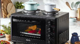 This compact appliance merges a spacious 32L convection oven with two integrated hot plates, delivering true multifunctionality. Ideal for baking, roasting, boiling, or frying, it’s a space-saving solution that brings both oven and stovetop cooking into one versatile unit.