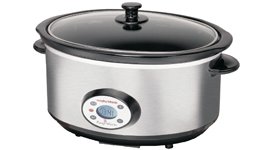 The main body of the slow cooker has an oval shape and is finished in stainless steel, with two cool touch handles at the sides, and non-slip feet at the base. With this stylish design, you could easily bring the entire appliance to the table to feed your dinner party guests.