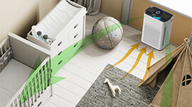 The integrated carbon filter helps absorb and reduce common household odours from cooking, pets and smoke. This supports a fresher indoor environment while maintaining consistent air purification performance.