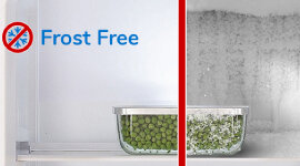 The frost-free freezer prevents ice build-up, eliminating the need for manual defrosting and reducing maintenance. It keeps storage space usable, supports more consistent airflow, and helps frozen items stay organised and easily accessible in the two-drawer layout.