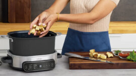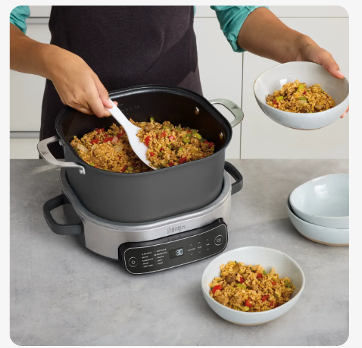 Designed for versatility, the Possible Cooke Pro features 10 cooking functions, including Slow Cook, Braise, Sear/Saute, Steam, and more. Whether you're in the mood for creamy oatmeal, fragrant quinoa, or a rich, simmering sauce, this cooker makes it possible with just the touch of a button. It's adjustable temperature control allows you to sear meats to perfection or cook low and slow for deep, flavourful results. Speed and efficiency are at the core of the Possible Cooker Pro, cooking rice 50% faster than traditional rice cookers and delivering 30% faster overall cooking performance. With its oven-safe pot (up to 260°C), you can easily transfer dishes from the cooker to the oven for that perfect crispy finish, then serve directly from the pot. The cool-touch handles make it easy to transport your meals to the table or a gathering without hassle. Designed to simplify both cooking and cleanup, the dishwasher-safe pot, lid, and rice spoon ensure effortless maintenance. Plus, its compact design takes up minimal counter space, making it ideal for everyday use. The Ninja® Foodi Possible Cooker Pro transforms meal prep into a seamless, enjoyable experience, offering endless possibilities for home-cooked perfection.