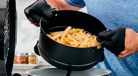 The Cook and Crisp basket is designed to intelligently direct air flow to optimally cook the inside and crisp the outside. In fact, you can cook a 2.3kg chicken from fresh to crispy in just 40 minutes.