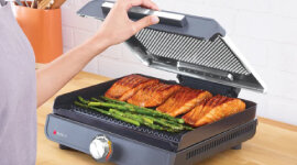 Whether it's a quick solo meal or a family-sized feast, this indoor grill adapts to your needs with effortless control and reliable heat performance. The compact size doesn’t compromise its cooking capacity, making it ideal for both everyday use and weekend indulgences. And with its sleek design, it’s as stylish as it is functional, fitting neatly into any kitchen space without clutter.