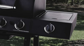 The gas grill chamber is an ideal option when you don’t have the time to smoke or build a fire. Rapidly sear steaks and grill sausages using the three gas burners and you can have a delicious barbecued meal prepared in no time. The gas grill chamber and charcoal grill chamber each have their own lid with cool-touch handles to ensure safe operation. The side burner can be used to heat pots and pans so you can fry additional food or prepare sauces with your grilled meats. The large wagon-style wheels offer convenient mobility when you’ve finished cooking.