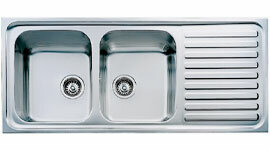 The double bowl configuration of this sink provides greater versatility for your cooking and cleaning needs. You can soak dishes in one side while you use the other bowl to wash, or use one side to thaw food and the other for washing utensils while you cook.