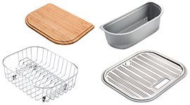 This sink pack comes with an assortment of handy accessories, including a drainer tray and wire basket for drying dishes, as well as a fitted chopping board and colander, for using your sink space to handle food preparation.