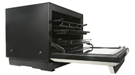 With a drop-down door and two cooking levels this microwave resembles a miniature oven. Even when you're only microwaving it doesn't use a turntable so you can more easily fit larger plates and rectangular trays inside. Plus it's easier to keep clean!