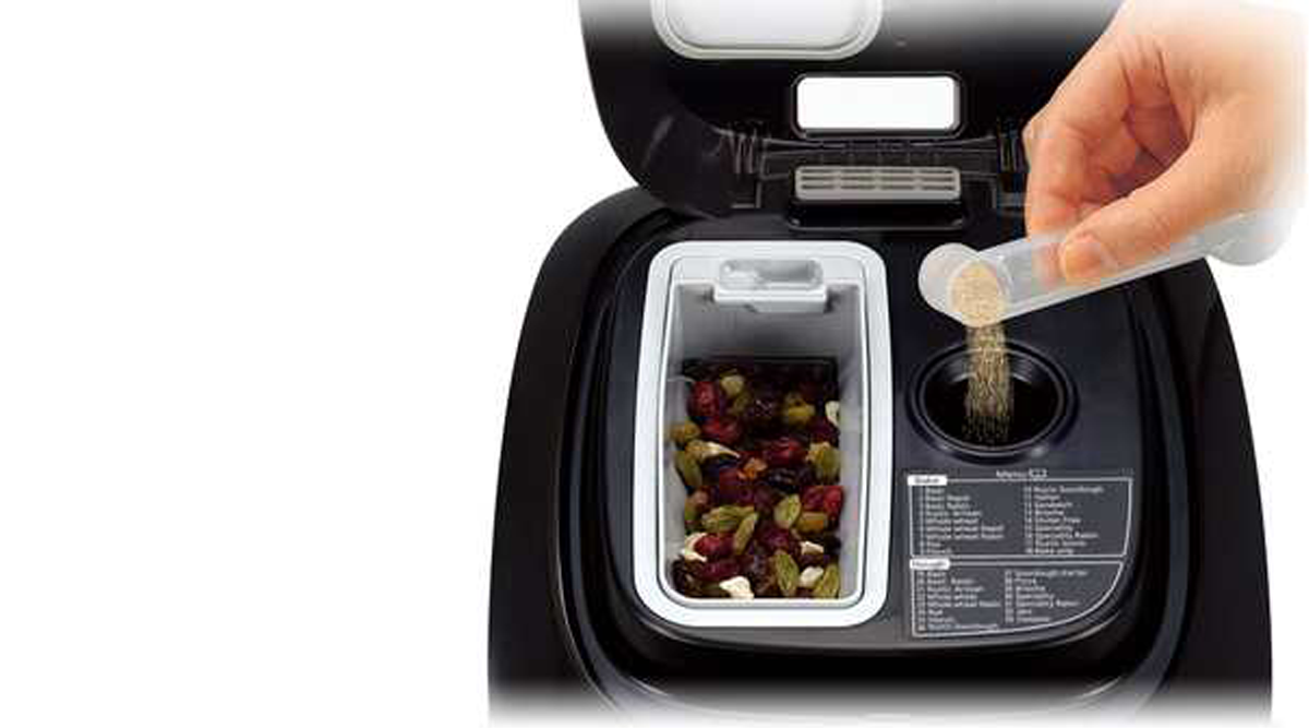 Add yeast at the optimal time for mixing, or use the removable fruit and nut dispenser to combine ingredients for a delicious fruit bread. Different ingredients are mixed evenly so each mouthful is bursting with the perfect amount of flavour.