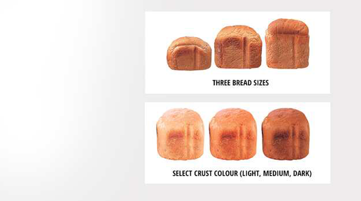 There are three loaf size options and three options for crust colour, so the unit will deliver no matter the occasion or your taste preferences. You can use the small loaf setting to experiment with a new recipe, or the large setting when it’s your turn to bring a plate.
