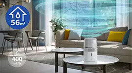 With a high output of 400 ml/h and adjustable fan speeds, this humidifier effectively hydrates rooms up to 56 square meters. Choose your preferred comfort level with three fan settings and automatic humidification modes.