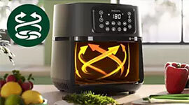 Circulates hot air in a powerful, swirling motion to ensure even cooking and crispy results with little to no added oil. This technology enhances taste and texture while supporting healthier eating habits, whether you're preparing snacks, mains, or desserts.