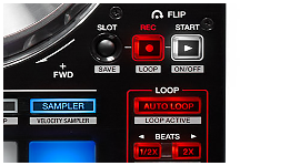 Three dedicated buttons allow you easy access to Serato Flip. Record, start and slot. This simple control allows you to record your hot cue combinations and replay them easily on loop.