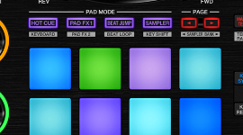 The Performance Pads provide an easy way to activate pre-mapped functions and a visual reference to which effects are active through backlighting. Trigger Hot Cues, Roll, Slicer, Sampler, Pitch Play, Slicer Loop, Cue Loop and Saved Loop from the Pads.