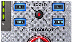 Control Sound Colour FX and Beat FX simultaneously by hitting the Boost FX button. This simple feature allows you to manipulate the parameters of both FX at once. The rate at which you manipulate these FX is controlled entirely by how quickly you rotate the large chrome knob.