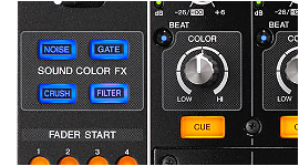 Trigger one of the 14 enhanced Beat FX and easily manipulate the level and depth parameters depending on how quickly you turn the dial. The Sound colour FX works alongside the Beat FX, adding new parameters in time with the beat.