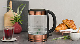 Whether it's to replace a malfunctioning one, upgrade for better efficiency or match the needs of a growing family, sometimes you just need a new small appliance in a hurry. At Appliances Online, our goal is to keep home essentials shopping as simple and stress-free as it can be. Our mission is to ensure your shopping experience is easy and convenient, right from the comfort of your home or phone. Let go of endless research and product comparisons - we've got you covered. Boasting over 8,000 distinctive products from leading global brands, we're Australia's largest online retailer of appliances and home essentials, so you're bound to find what you need. Our efficient, streamlined shopping experience helps you make confident choices without being overwhelmed. Rest assured that we know the importance of your time and money; that's why we strive to provide you with more value and satisfaction with every purchase. If you need Russell Hobbs Brooklyn Glass Kettle Copper RHK172 or any other home item, you can trust us to ensure you get exactly what you need right when you need it. At Appliances Online, we are dedicated to providing you with a smooth, worry-free and even enjoyable shopping experience.
