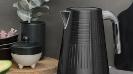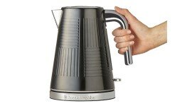 The Russell Hobbs Geo Steel Kettle that has a unique, metal textured design. Breaking new ground with its materials, this stainless steel kettle is designed with a black finish with polished accents and makes a premium statement in any kitchen. Letting you pour a brew from a kettle you’re proud of, you can enjoy a speedy morning brew, and can let you boil one cup in under 45 seconds. Plus, you'll always know when your kettle is on and boiling, thanks to the white illumination.