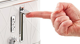 Keep an eye on your toast using the Lift and Look function. This clever design lets you simply lift, check on the colour and crunchiness of your toast, then place back down without interrupting the toasting process.