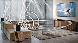 Sync up to a surround sound experience that doesn't clutter your space. The SWA-9500S Rear Speaker Kit is fully wireless, linking up to your Soundbar without separate modules. You don't need anything extra to set up, just plug in the power cable and enjoy the cinematic audio.