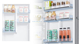 Fitting large or oddly shaped items into the fridge can be a challenge. The Adjustable Bin in the door helps you easily organise and flexibly store different sized items such as bottles, cartons and other items.