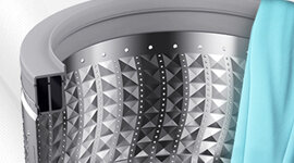 The interior drum is designed with smooth, diamond-shaped ridges that are gentle on your fabrics, including delicate items. Together with its soft-curl shape and small water exit holes delivers effective cleaning with care.