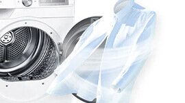 Enjoy quick and more precise drying with AI Dry System and 8 sensor technology. By continually sensing the temperature and humidity of the clothes in the drum, it intuitively controls and optimises drying performance while being gentle on clothes.