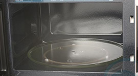 The microwave interior is made of ceramic enamel which is scratch resistant and easier to clean.