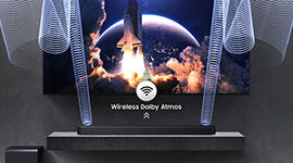 Wireless Dolby Atmos technology brings cinematic sound into the home without the need for complex cabling. By projecting audio above and around the listener, it creates a realistic three-dimensional effect that adds intensity and realism to every scene. The included rear speakers further enhance immersion by extending audio to the back of the room, delivering a more complete surround experience.