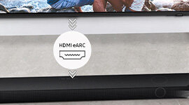 Tailor your sound to fit your space with SpaceFit Sound Pro, which analyses room reverberations from your soundbar and subwoofer to give you sound and bass that's just right. And with HDMI eARC Connection, you can enjoy advanced audio like Dolby Atmos from your compatible TV-connected devices, including gaming consoles and blu-ray players.