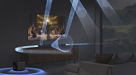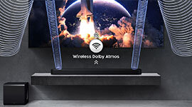 With Wireless Dolby Atmos and DTS:X, you’ll hear every layer of sound moving above and around you, all without the clutter of HDMI cables. When paired with a compatible Samsung TV via Q-Symphony, the TV and soundbar work together for a wider, more dynamic soundstage that pulls you deeper into the action.