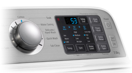 Combining a simple dial for selecting from 10 wash programs with an LED display that show the remaining wash time this top loader makes it simple to enjoy improved wash results.