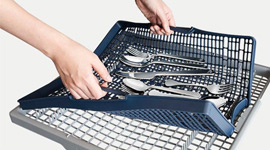 Samsung's handy FlexTray allows you to lay out all of your knives forks and other utensils and conveniently move them into or out of the dishwasher at the same time. The dishwasher's upper rack has also been designed to glide in and out smoothly for easier loading and unloading of dishes and glassware.