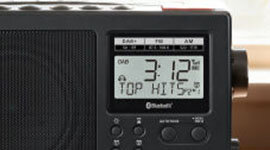 The backlit LCD screen clearly presents broadcast data, menus, and clock functions. Dual alarms, sleep and countdown timers, and a snooze function streamline daily routines and add versatility to both bedside and portable use.
