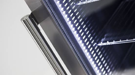 This fridge is equipped with triple-glazed glass doors to minimise noise and helps to keep in the cool temperature more efficiently.