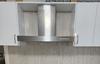 Innovative design - this stainless steel canopy with square-edged Euro-styling creates a bold modern kitchen look.