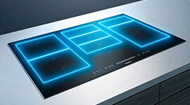 Siemen cooktops with flexInduction Plus automatically extends heating zones in two directions. If one zone is too small, more inductors activate for even heat. Perfect for large pots, teppanyaki plates, or griddles, it offers exceptional freedom for creative and versatile cooking.